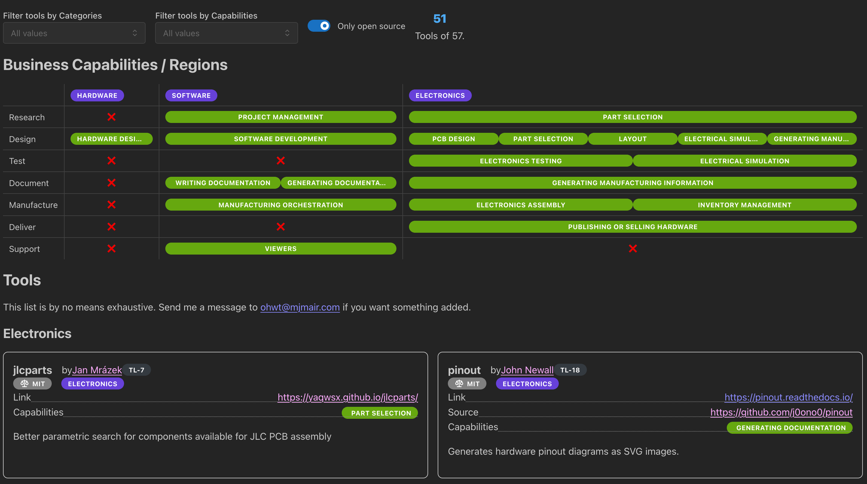 I am working on a new project that aims to consolidate information about open hardware toolchains: